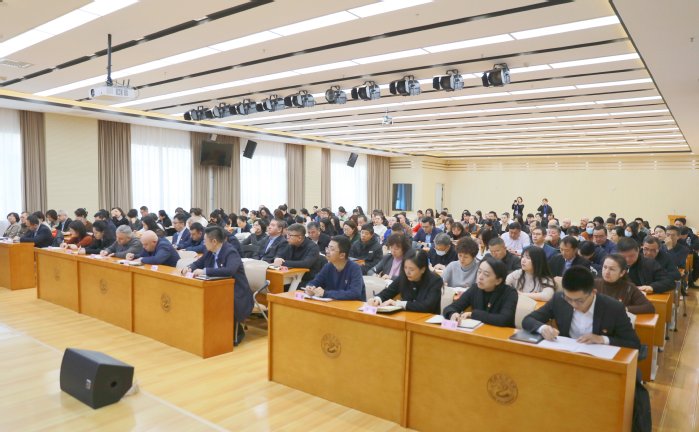 会议由学校党委副书记、院长莫合德尔·亚森主持。学校领导班子成员樊文平、 钱玲、全立新、木亚赛尔·托乎提、陈建平、斯尔哈孜·布兰拜、周达疆、刘昌海,处级干部、各二级学院党委、党总支委员以及干部教师代表参加会议。