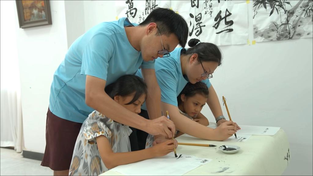 社会实践服务团的同学们还在岳普湖县文化馆、第六中学和艾西曼镇美容学校等地开展了为期6天的艺术培训,培训内容涵盖音乐、舞蹈、绘画、书法、演讲与主持、化妆等方面,培训当地文艺工作者100人次。培训结束,同学们与培训学员一起,进行了艺术培训成果展示演出。