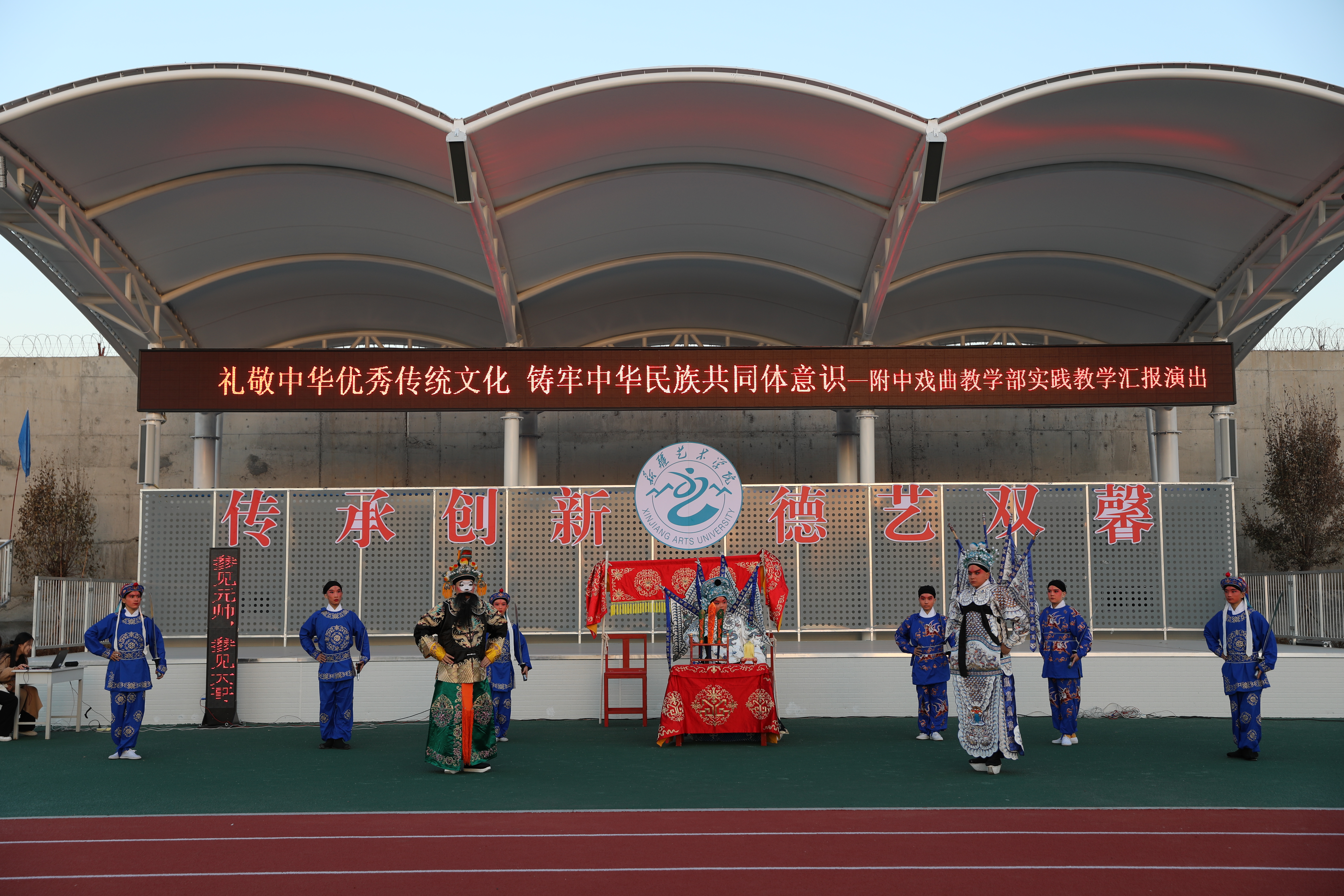 10月7日和10月18日,附属中等艺术学校先后举办“凝心聚力 以美育人”美术作品联展、“春华秋实 乐享未来”音乐会和“礼敬中华优秀传统文化”实践教学汇报演出。美术作品联展展示了美术教学部教师在吉木萨尔、库尔德宁等地实地采风时创作的油画、国画、水彩等40余件作品,展览内容题材丰富、形式多样。音乐会上,国乐合奏《太艾孜舞曲》、钢琴独奏《春舞》、古筝独奏《苍歌引》、马头琴重奏《初升的太阳》、手风琴独奏《春到帕米尔牧场》、合唱《赋得古原草送别》《青春舞曲》等演出精彩纷呈。汇报演出中,戏曲教学部师生们以饱满的热情,用京剧表演《白蛇传·仙山盗草》《赤桑镇》《战马超》等经典剧目,将戏曲传承创新与新时代青年责任担当深度融合。