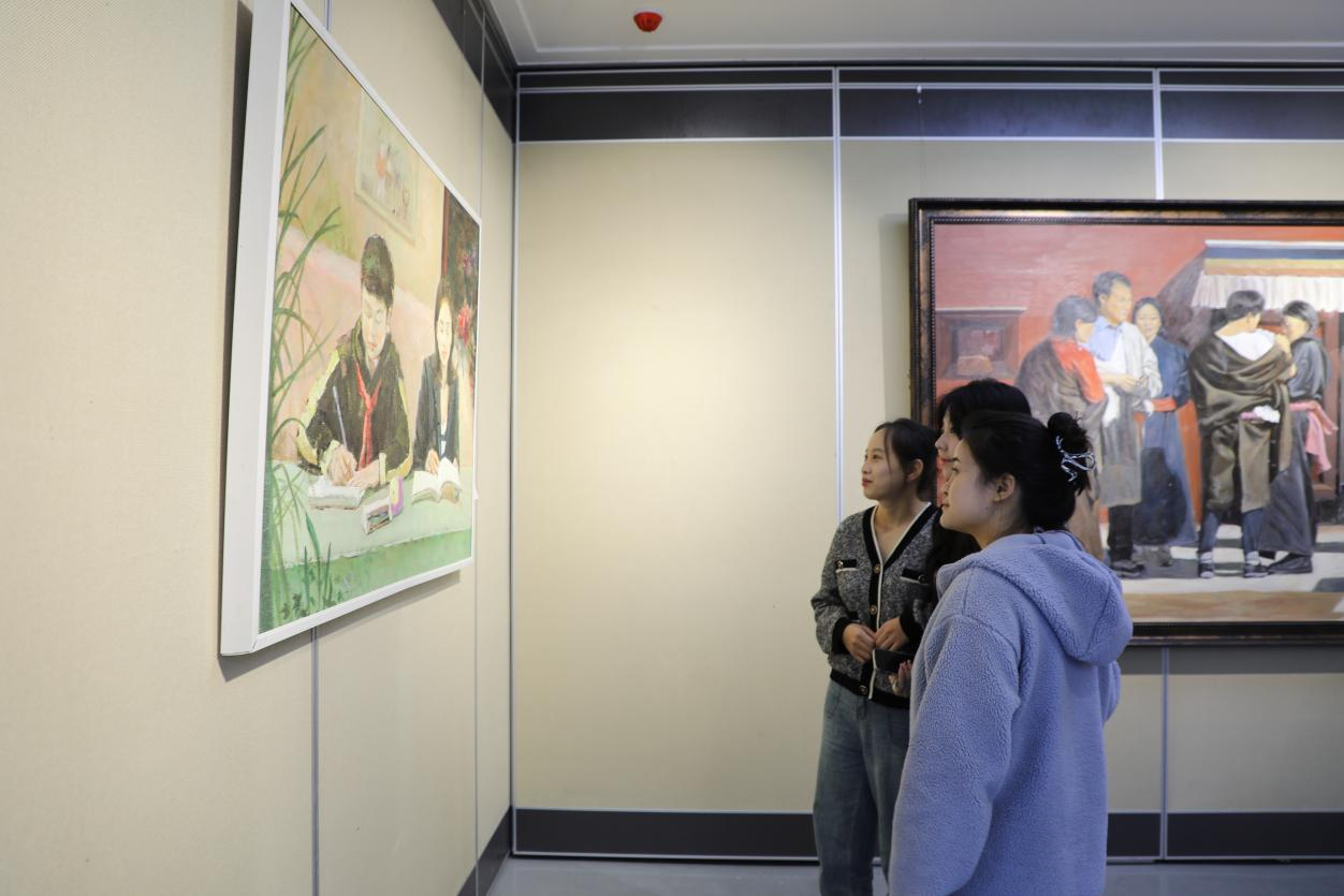 学生参观“凝心聚力 以美育人”美术作品联展