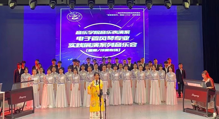 在学校党委的统一安排部署下,各学院实践学期各项工作稳步推进。音乐学院实践学期阶段性成果汇报音乐会,主题丰富、形式多样,通过舞台展演促进教学、科研、实践“三位一体”发展,师生在不同艺术形式、不同器乐演奏的交流与融合中协作完成主题音乐作品,培养感受力和共情力,提高专业技能水平和情感表达能力,充分展现了全体师生青春心向党、强国有我的坚定信心和弘扬主旋律、传播正能量的积极实践。