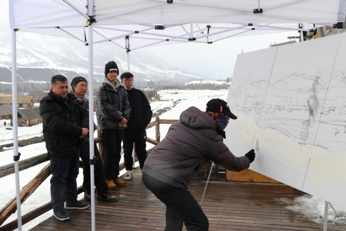 在美丽的禾木风光中,三校教师亲自进行写生示范、师生一起取景写生,相互观看作品,交流创作心得。“雪,在光的照射下,产生丰富的色彩变化。雪景写生是探索光色变化、训练捕捉色彩能力的有效方式之一。禾木这片天地,宁静祥和、静谧清纯。特别是雪后,在被茫茫白雪包裹的银色世界里写生,趣味无穷、畅快淋漓,让人流连忘返!”中央美术学院袁元教授说。学生们也纷纷表示,此次写生激发了创作热情,对绘画语言的感受有了很大的突破。三校在本次写生绘画交流的基础上,后期将选取师生写生作品进行联展。