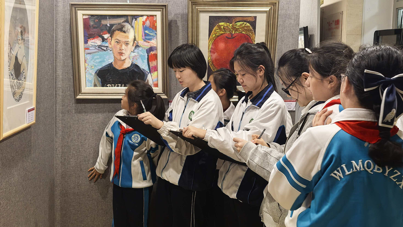 庙尔沟中学学生参观作品展
