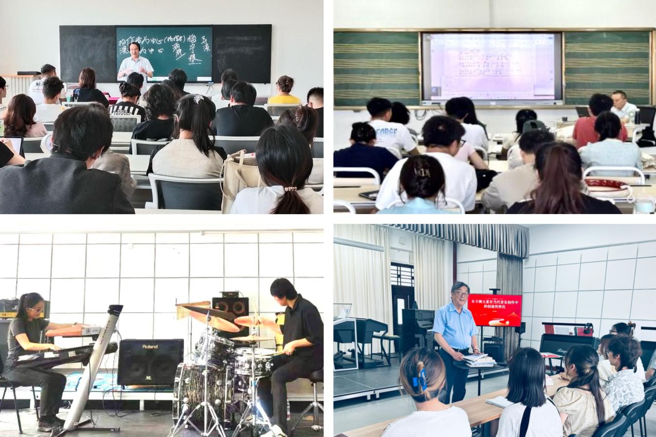 6月17日至27日,音乐学院先后邀请“天池英才”计划特聘专家、音乐学院名誉院长肖学俊,新疆音乐家协会名誉主席、一级作曲家、指挥家努斯来提·瓦吉丁,中国著名爵士鼓专家聂鑫分别作了题为《传统音乐记谱的理论与方法》《传统音乐的记谱实践》《木卡姆元素在当代音乐创作中的创造性转化》《鼓在合作关系下的律动发展和即兴概念》的讲座。讲座分别从传统音乐记谱理论、木卡姆元素的当代转化、爵士鼓的律动发展等专业领域展开,通过理论讲解、经典案例示范和互动实践,深化了师生对传统音乐体系的理解,拓展其对当代音乐创作的创新思维。
