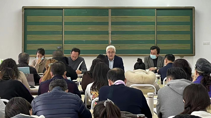 学校党委常委、统战部部长斯尔哈孜·布兰拜在戏剧影视学院作党的十九届六中全会精神宣讲辅导