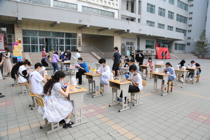 红色长廊里余音袅袅,子衿汉服社的同学们身着韵味十足的服装,吹奏悦耳动听的箫声,吸引着同学们参与猜字谜、赏霓裳。大学生活动中心里剑拔弩张,桌游社的同学们在赏金券的争夺中进行着逻辑推理与心理博弈的较量。文化广场前精雕细琢,在辩论社肺活量挑战中胜出的同学正在聚精会神的进行陶瓷彩绘。操场上笑语盈盈,跆拳道社、心理社、青年志愿者协会的投壶射礼、保龄球和拳击室外活动让同学们在运动中体悟竞争与合作、感悟古今运动所蕴含的文化内涵……