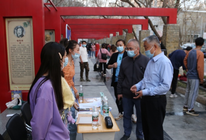 章立新书记正在与参与社团活动的同学亲切交谈