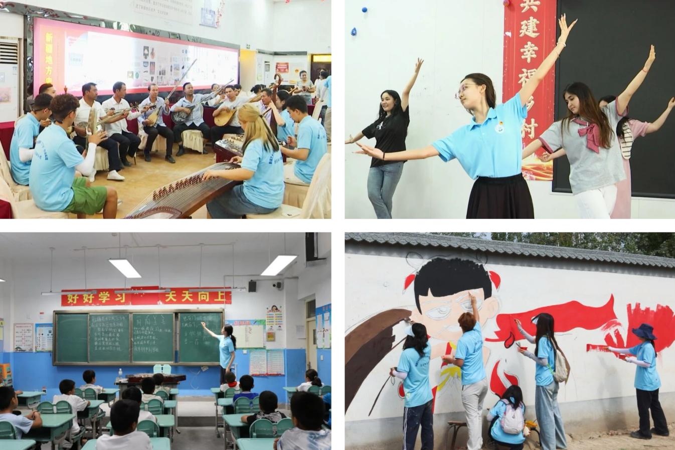 音乐、舞蹈、美术、设计、书法、传媒、戏剧影视、文化艺术学院50名师生组成的社会实践服务团,在喀什地区岳普湖县开展艺术教学、文艺展演、政策宣讲、推广国家通用语言文字、墙绘创作、助农直播等活动,广大青年学生在社会实践中了解国情、服务群众,为乡村全面振兴注入新的活力。