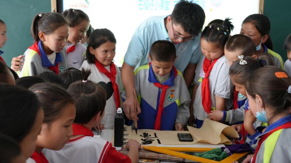 “三下乡”社会实践服务团学生教孩子们写书法