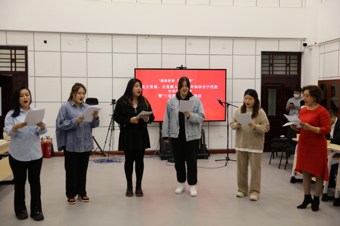春暖大地,共沐书香。3月以来,学校民主党派、无党派人士、党外知识分子代表开展了“诵读经典 同心筑梦”暨“三进两联一交友”系列活动。教师们通过与学生座谈交流,解疑答惑、策划创作实践方案、指导创新创业、规划大学学习生活,和同学们深度沟通交流。同时,开展了诵读经典活动,师生们一起诵读了《雪落在中国的土地上》《百年传奇》《诗意中国》等诗歌作品,演唱了《春夜喜雨》《念奴娇·赤壁怀古》《蝶恋花》等经典诗词。