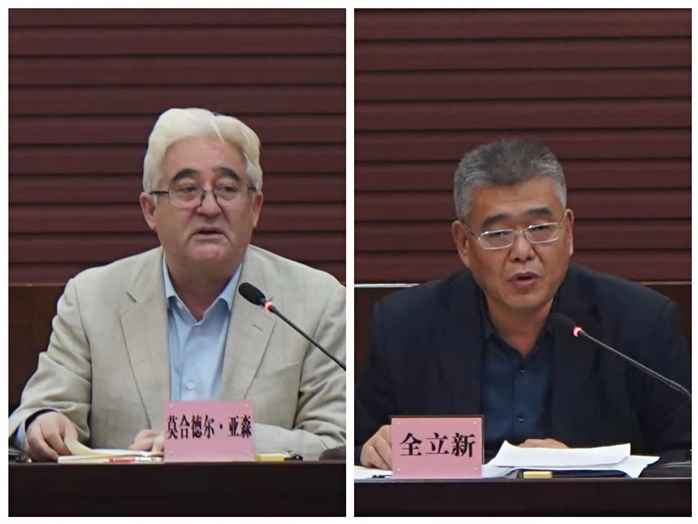 学校党委副书记、院长莫合德尔·亚森作交流发言、党委常委、副院长全立新主持研讨会