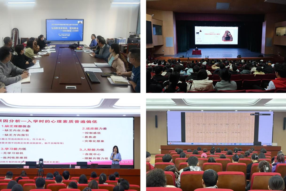 10月29日至11月12日,人文基础部先后邀请上海交通大学孙麒麟、新疆职业大学李妍、新道科技徐昀,分别作了题为《弘扬教育家精神,爱岗敬业——为祖国健康工作五十年》《AI赋能外语教学竞赛备赛策略与课题呈现技巧》《人工智能技术及教育应用实践》的专题讲座,涵盖AI赋能外语教学、人工智能教育应用等方面。