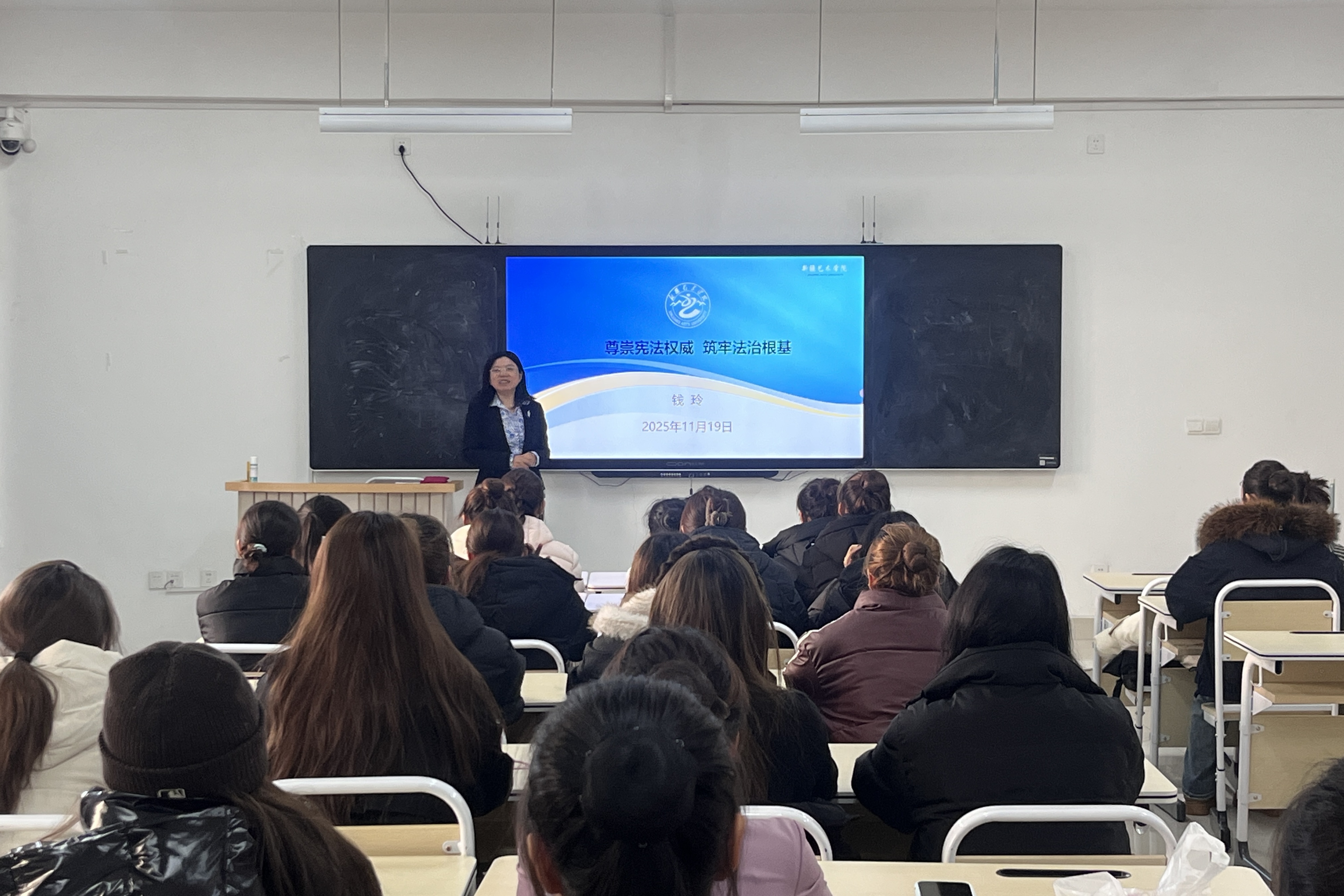 期间,学校党委副书记、副院长钱玲,党委常委、宣传部部长周达疆分别在金桥校区和团结校区进行了法治宣讲。