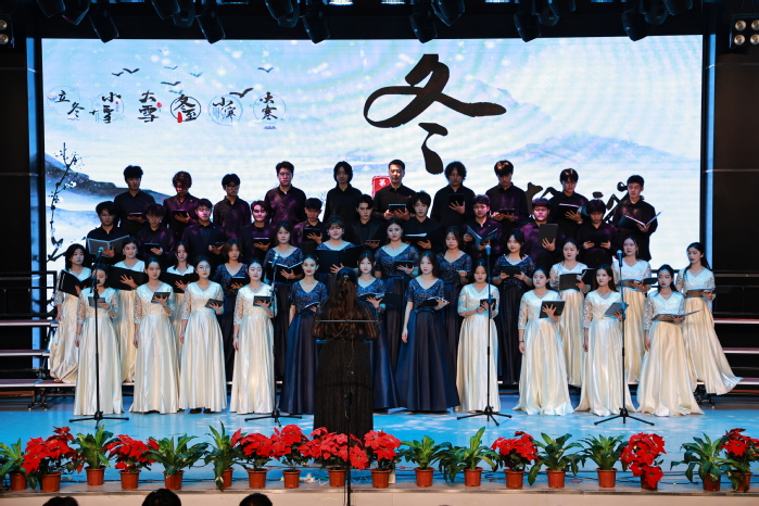 此次音乐会,作为“中华优秀传统文化进高校”项目之一,按二十四节气分成了“春之萌动”“夏之热烈”“秋之收获”“冬之静谧”四个篇章,通过女声合唱《问春》、民乐合奏《昆仑之春》、二重唱《花海与云》、冬不拉齐奏《夏至》、手鼓独奏《丰收》、电子管风琴与乐队《墨梅》、混声合唱《雪花的快乐》等16首曲目,生动展现二十四节气蕴含的文化内涵。