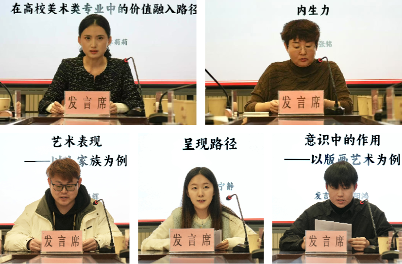 与会师生从“中华民族共有精神家园的艺术呈现路径”“艺术创作在铸牢中华民族共同体意识中的作用”“中华优秀传统文化融合与创新的艺术表现”“中华文化符号和形象”等方面,结合所学专业进行交流发言,专家分别进行了点评。