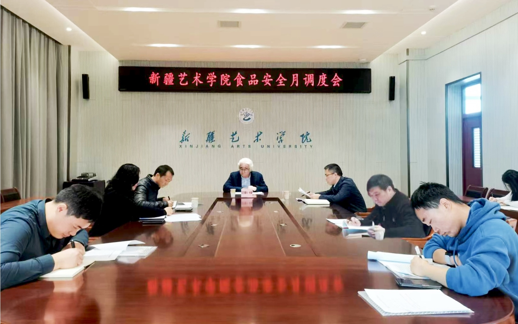 12月23日,我校召开食品安全月调度会。学校党委副书记、院长、食品安全领导小组组长莫合德尔·亚森出席并讲话。党委常委、组织部部长、食品安全总监刘昌海,后勤处、党(院)办等相关单位负责人参加会议。