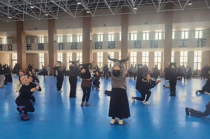 春晚喀什分会场我校的演出团队平均年龄为22岁,由汉、维吾尔、哈萨克、柯尔克孜、回、蒙古、锡伯、土家、布依等民族师生构成,参加了此次多个舞段、节目的演出及媒体录制和采访。师生携手并肩、克服困难、夜以继日地进行排练,愈加刺骨的寒冷天气、日益增多的排练频次、不断完善的节目设计、日渐提升的训练强度,丝毫没有动摇大家刻苦训练的决心,“全力以赴”成为无言的默契。