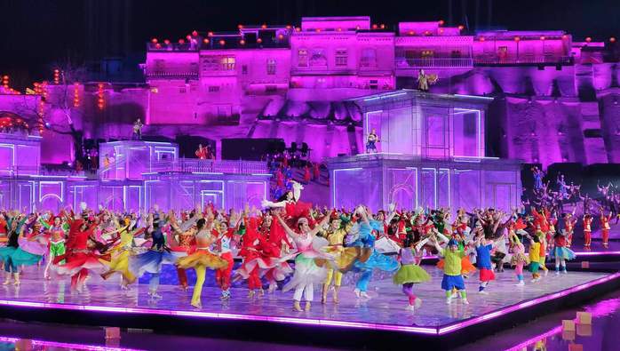 2月9日,除夕之夜,中央广播电视总台《2024年春节联欢晚会》喀什分会场,万众欢腾、高歌曼舞,迎春纳福、其乐融融。新疆艺术学院90名师生演出团队与全国各族人民共同奏响了中华民族一家亲的绚丽乐章。