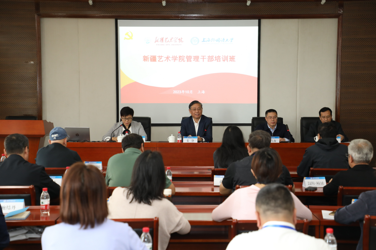 为进一步提升学校管理干部履职能力,推动学校内涵建设高质量发展,10月29日至11月12日,新疆艺术学院与上海外国语大学携手举办管理干部培训班。上海外国语大学党委书记姜锋、新疆艺术学院党委常委、宣传部部长周达疆和党委常委、组织部部长(人事处处长)刘昌海出席开班式并讲话,我校41名领导干部先后分两批赴上海外国语大学参加培训。