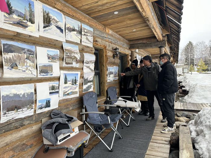 在美丽的禾木风光中,三校教师亲自进行写生示范、师生一起取景写生,相互观看作品,交流创作心得。“雪,在光的照射下,产生丰富的色彩变化。雪景写生是探索光色变化、训练捕捉色彩能力的有效方式之一。禾木这片天地,宁静祥和、静谧清纯。特别是雪后,在被茫茫白雪包裹的银色世界里写生,趣味无穷、畅快淋漓,让人流连忘返!”中央美术学院袁元教授说。学生们也纷纷表示,此次写生激发了创作热情,对绘画语言的感受有了很大的突破。三校在本次写生绘画交流的基础上,后期将选取师生写生作品进行联展。
