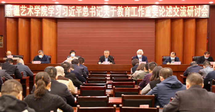 为深入学习贯彻习近平总书记关于教育的重要论述,进一步落实全国及自治区教育工作会议精神,3月14日,我校举办学习习近平总书记关于教育的重要论述交流研讨会。学校党委书记章立新出席会议并讲话。学校党委领导班子成员莫合德尔·亚森、樊文平、吾甫尔·如苏力、全立新、斯尔哈孜·布兰拜、周达疆及处级干部、专家教授代表参加会议。