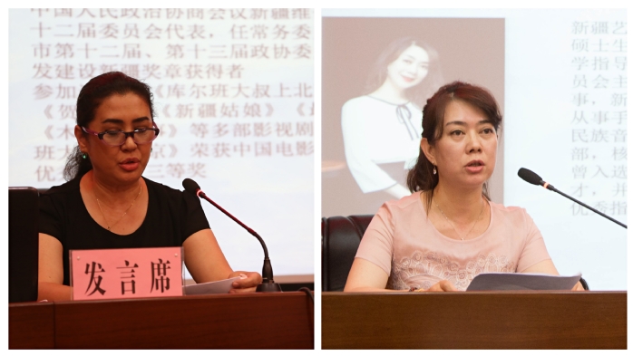 签订仪式后,中央美术学院与我校联合举办了文化润疆学术论坛。学术论坛由学校党委常委、副院长全立新主持。中央美术学院美术馆馆长张子康教授、设计学院党总支书记王子源教授、协同创新办公室主任岳洁琼,我校戏剧影视学院院长木亚赛尔·托乎提副教授、音乐学院雷嘉彦教授分别从艺术与地域文化产业的融合、尊重文化传统与多样性、艺术服务人民和艺术教育发展等方面作了学术报告。