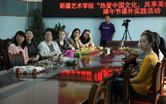 为增进中外文化交流,使我院留学生了解和体验中国传统节日端午节的文化,6月14日上午,学院外事处与文化艺术系共同举办了一场以“热爱中国文化,共享美好端午”为主题的留学生端午节课外实践活动。活动在文化艺术系会议室举行,来自哈萨克斯坦、韩国、美国等多个国家的留学生和他们的授课教师及外事处干部一同参加了活动。
