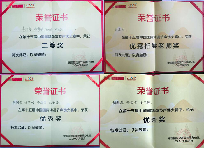 我院连续九年晋级中国国际动漫节声优大赛决赛,并连续九年获得优秀组织奖。